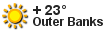 Die durchschnittliche Wassertemperatur in Outer Banks im September 2025 war 24.0°C. Wobei die minimalen und maximalen Meerestemperaturen betrugen 21.7°C und 25.6°C respektiv.